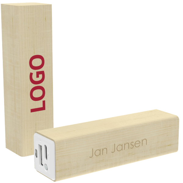 Met een buitenkant van glad FSC® gecertificeerd esdoornhout en een ingebouwde LED zaklamp is de Maple Powerbank de perfecte manier om jullie logo te presenteren op een natuurlijke en stijlvolle manier. De Powerbank kan op twee kanten met gravering of zeefdruk worden bedrukt.